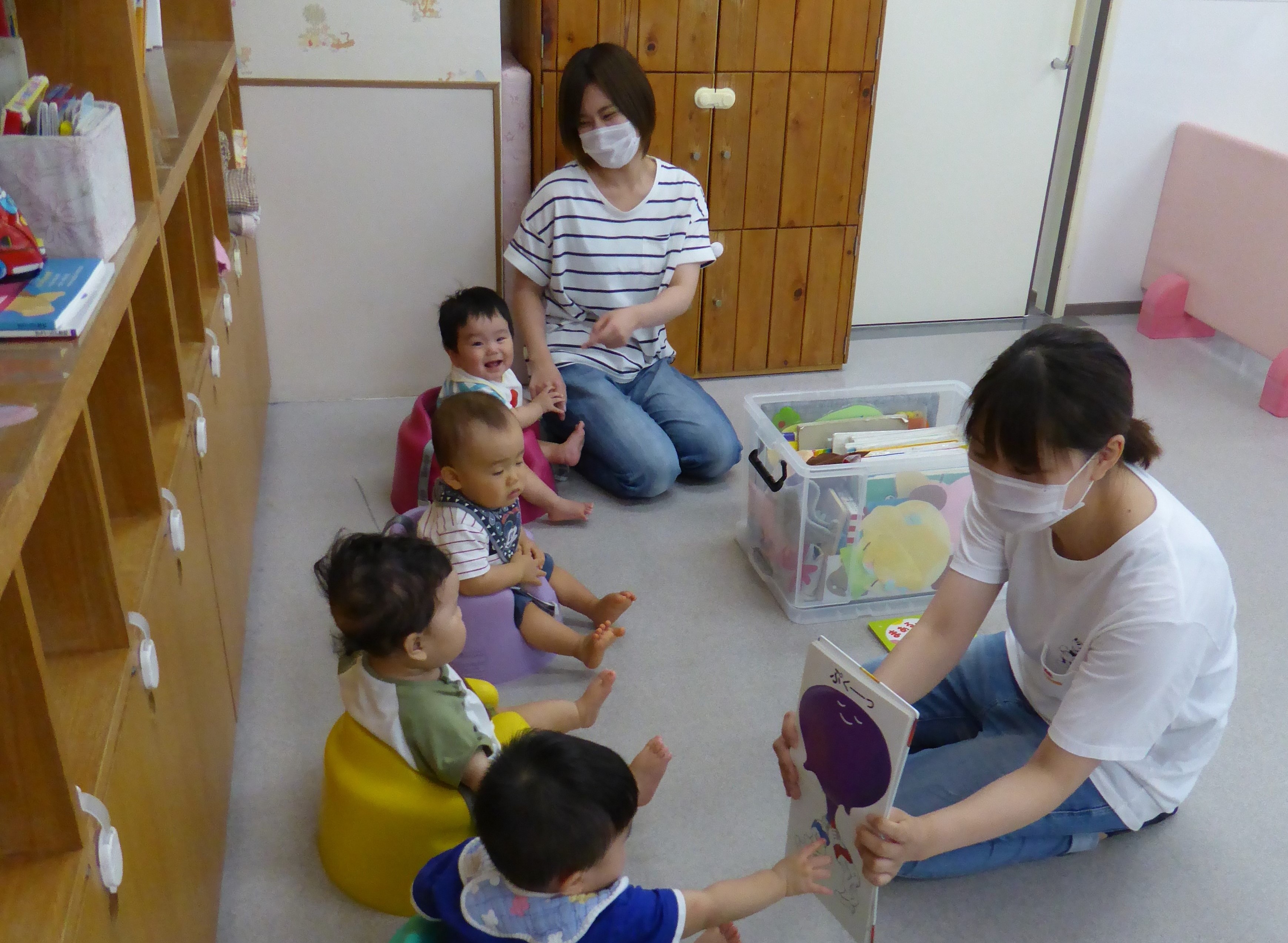 当園では、0歳から絵本の読み聞かせを行っており、