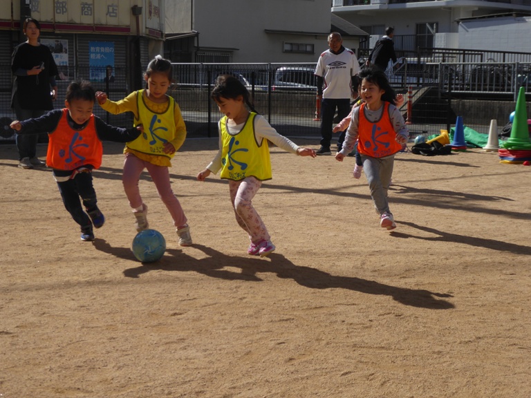 体操指導の先生が定期的に来園し、跳び箱・マット・鉄棒など様々な運動をレクチャーします。 サッカー教室では、指導員の先生が様々なサッカー遊びを教えてくれます。 夏にはプールを行い、保育士が月齢に合わせたプール指導を行います。